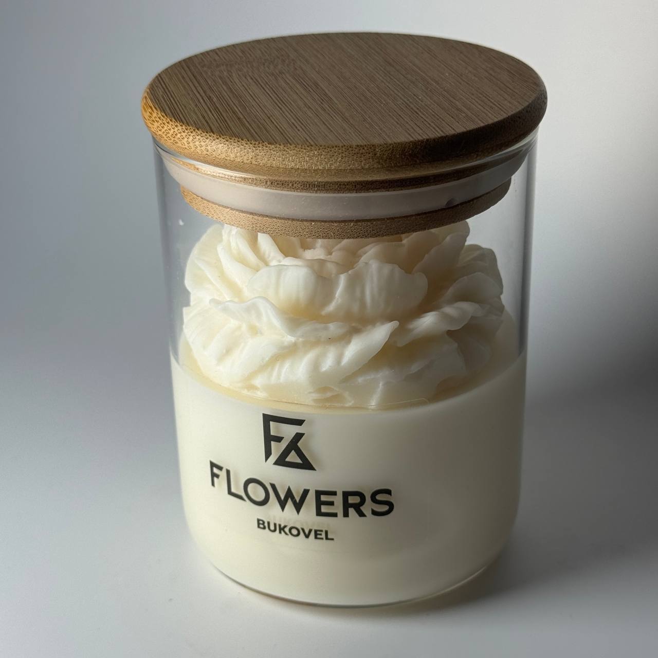 свічка ароматизована з кокосового воску, квітково-ванільний аромат з ефектом потріскування каміну, корпус-дерево,скло, повністю екологічна