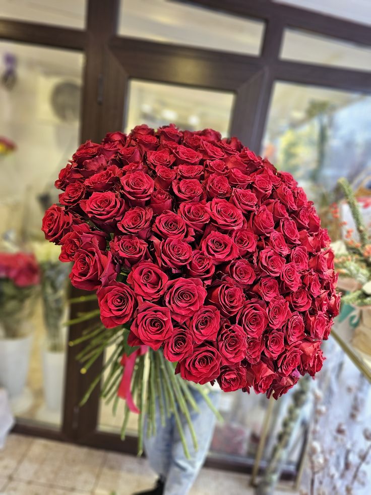 склад букету: 101 червона троянда (виробник Еквадор) висота 80 см